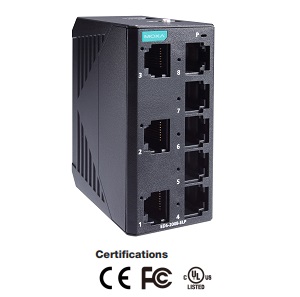 Серія EDS-2008-ELP має єдиний вхід 12/24/48 В постійного струму, кріплення на DIN-рейку та високі рівні EMI / EMC. Окрім компактних розмірів, серія