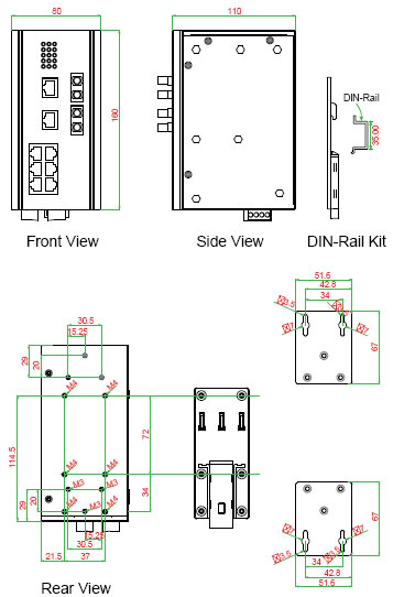 сумісні, 10 портові, керовані DIN-Rail Ethernet