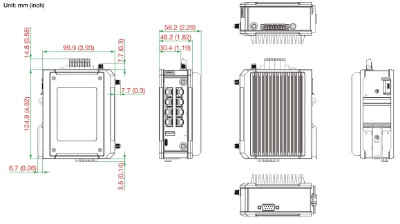 B8 / B20 / B28, 1 x RS232/422/485 послідовний порт, 8 x 10/100/1000BaseT (X) RJ45 порти, робоча температура