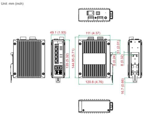 6 портовий індустріальний керований Ethernet комутатор з 2* 10/100/1000BaseT(X) портами