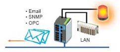 Серія MOXA EDS-510A може посилати попереджувальні повідомлення по електронній пошті, коли виявлено подію для забезпечення системних інженерів аварійними повідомленнями в реальному часі.