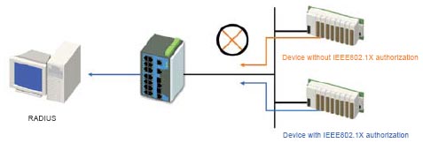 MOXA EDS-510A підтримує IEEE 802.1X (Port-Based Network Access Control - порт базований контроль доступу) для розширених додатків доступу користувача. Тільки авторизовані користувачі можуть мати доступ до порту. Аутентифікація грунтується на використанні локальної бази даних користувачів або зовнішнього
