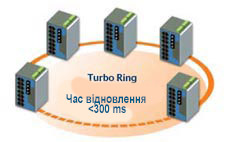 Ethernet вже став за незмоги основним засобом передачі даних для промислових додатків автоматизації. Фактично, відео, голос та високошвидкісні дані промислових прикладних додатків можуть бути інтегровані в одну мережу. MOXA EDS-516A оснащений надмірною Ethernet протоколом, який отримав назву Turbo Ring (Турбо Кільце), що дозволяє системі мати зручні засоби управління і підвищує її надійність функціонування. З MOXA Turbo, якщо відбудеться відключення будь-якого сегменту мережі, ваша система автоматизації через 20 мс буде знову функціонувати нормально.