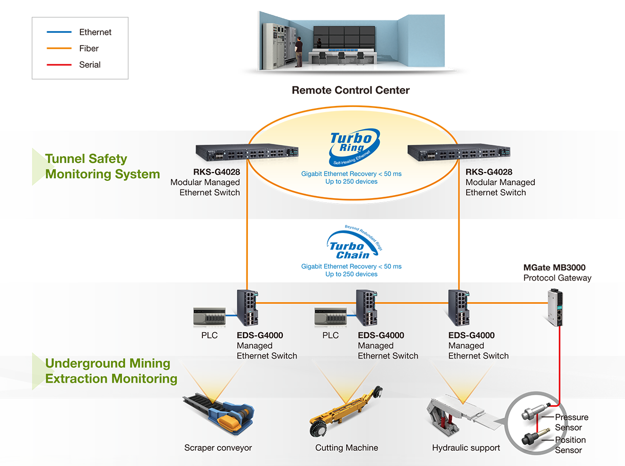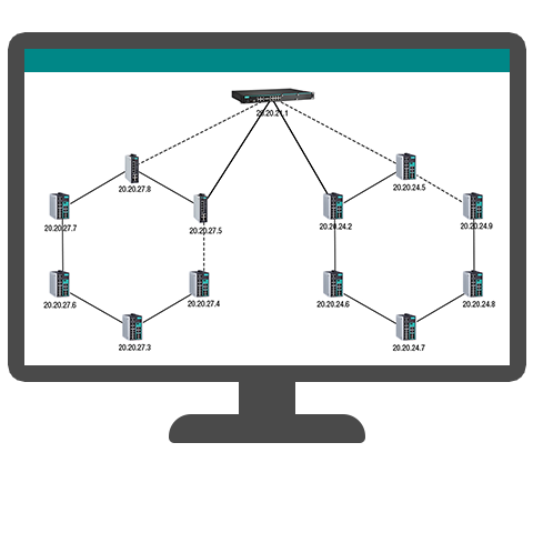 Забезпечте оптимальний час безвідмовної роботи та відмовостійкість системи в автоматизації майнінгу за допомогою топологій Moxa Turbo Ring і Turbo Chain, які забезпечують обробку багатоадресних пакетів із часом відновлення 20 мс для до 250 пристроїв і гнучке розширення для проектування системи.