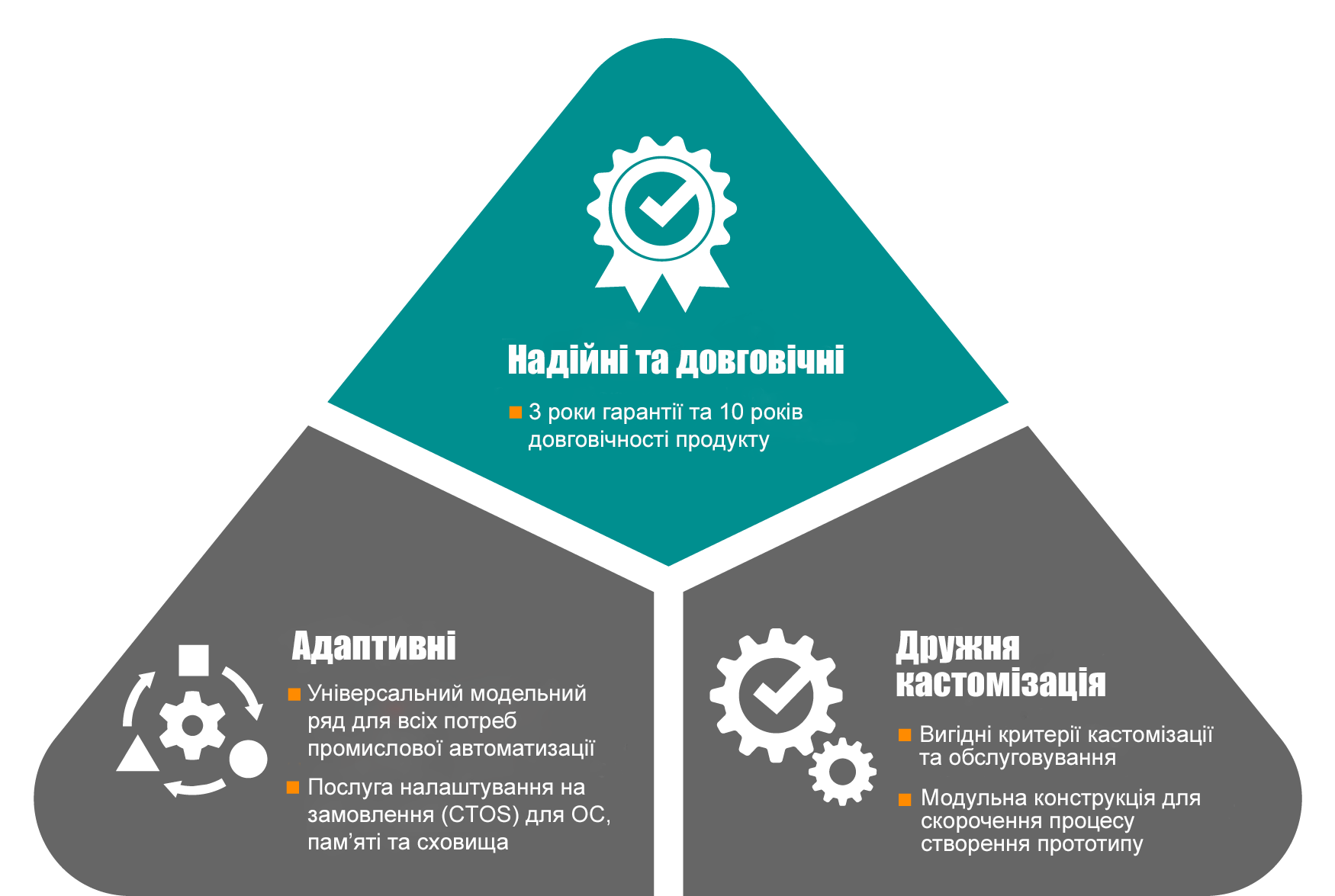 Moxa представляє нове покоління промислових комп’ютерів серій BXP, DRP і RKP, які спеціально розроблені для сприяння швидкому розвитку систем за допомогою надійних, адаптованих і економічно ефективних обчислювальних рішень. Промислові комп’ютери базуються на попередньо сформульованій архітектурі конфігурації на замовлення, що дозволяє легко задовольняти різноманітні вимоги до розробки системи та інтеграції. Їхня широкотемпературна конструкція в поєднанні з роботою без вентилятора забезпечує стабільну роботу навіть у суворих умовах. Крім того, 3-річна гарантія та 10-річний термін служби продукту підкреслюють нашу відданість якості продукції.