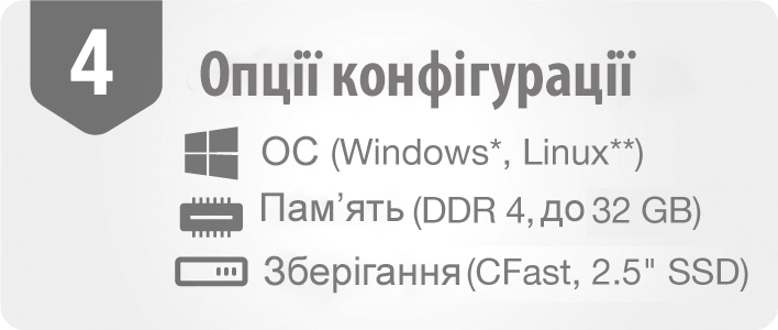 | CFast: 64 ГБ, 128 ГБ, 256 ГБ, 512 ГБ, 1 ТБ | 2.5”SSD: 64 ГБ, 128 ГБ, 256 ГБ, 512 ГБ, 1 ТБ | ||||