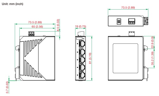 | Некерований індустріальний комутатор з 5 10/100/1000BaseT(X) портами
