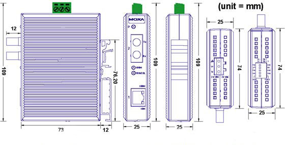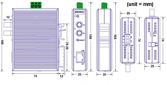 Зовнішній вигляд: Розміри: Серія IMC-21 (10/100BaseTX в 100BaseFX