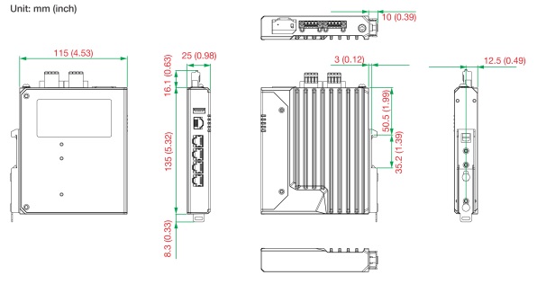 4x 10/100/1000BaseT(X) портами, робоча температура від