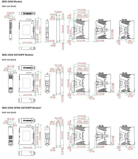 SDS-3006-2GTXSFP(-T): 36 x 135 x 111 мм