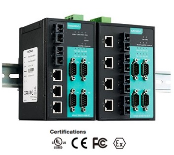 MOXA NPort® S8455I-MM-SC має 2 оптичних і 3 "мідних" Ethernet порти, а також 4 RS-232/422/485 порти в одному пристрої, що дозволяє знизити загальне споживання, займану ними площу і як підсумок - загальну вартість проекту.