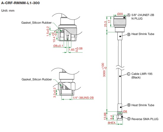 LMR-195 Lite кабель, N-type (male) в RP SMA (male), 3