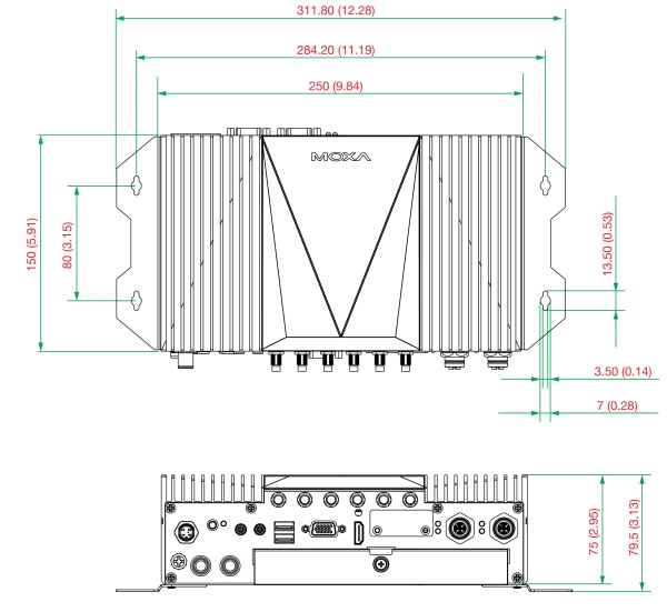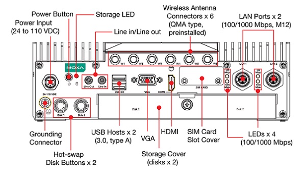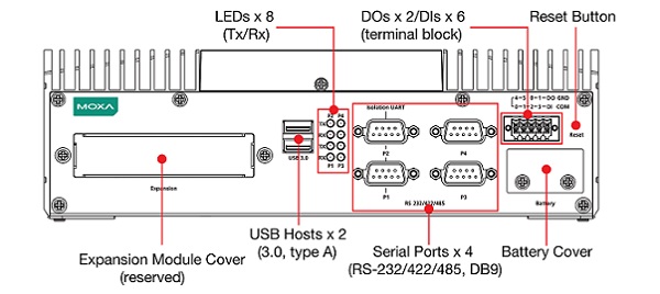 RS-232/422/485, 6 DI, 2 DO і 4 порти USB 3.0. Крім того,