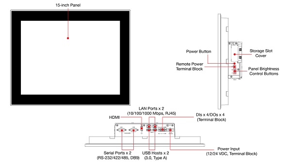 15-дюймові панельні комп’ютери MPC-3150 із двоядерним/чотирьохядерним