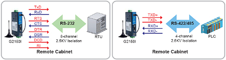 Два послідовних інтерфейсу роблять OnCell G2150I ідеальним для приєднання всіх типів пристроїв, як наприклад, окремий контролер, COM порт на PC або електричний вимірювач.