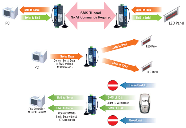 Основна перевага GSM технології - підтримка коротких повідомлень (SMS) для простого зв'язку по мобільних мережах. З використанням тунельного способу передачі SMS, функціональність додатків може бути значно розширена, а додаткові витрати - мінімізовані. Наприклад, тунельний спосіб передачі SMS може бути використаний для коригування повідомлень на дисплейній панелі на шосе.