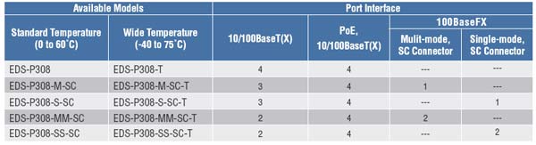 Серія MOXA EDS-P308 - інтелектуальні економічні некеровані 8 портові Ethernet комутатори для мереж автоматизації. MOXA EDS-P308 підтримує 8 Ethernet портів, чотири з яких (з 1 по 4) підтримують живлення PoE (Power-over-Ethernet). Ці пристрої класифікуються як джерела живлення - power source equipment (PSE) і дозволяють будувати мережі з централізованим живленням потужністю до 15.4 ват на порт. Комутатори MOXA EDS-P308 можуть працювати спільно з IEEE 802.3af сумісним обладнанням, без необхідності застосовувати для них додаткові джерела живлення. MOXA EDS-P308 комутатори підтримують IEEE 802.3 / 802.3u / 802.3x з 10 / 100M, full / half-duplex, MDI / MDI-X auto-sensing. Крім того, вони мають спеціальний релейний вихід, який допомагає системним інженерам отримати інформацію про помилки у функціонуванні пристроїв, наприклад, вихід з ладу джерела живлення або відключення одного з портів. Це дозволяє обслуговуючому персоналу швидко прийняти рішення для відновлення працездатності комутаторів.
