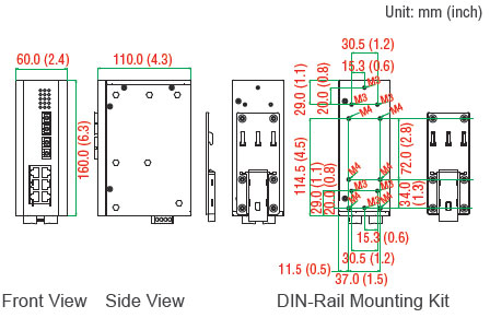 з 6 10 / 100BaseT (X) портами і 2 100BaseFX multi-mode портами з SC з`єднувачами, 1 ізольований блок живлення (24 VDC), температурний діапазон від