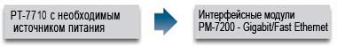 1 для будь-якої комбінації 8-, 7, 6 або 4 портових інтерфейсних модулів PM 7200 з 10 / 100BaseT (X) або 100BaseFX (SC / ST з'єднувачі) або