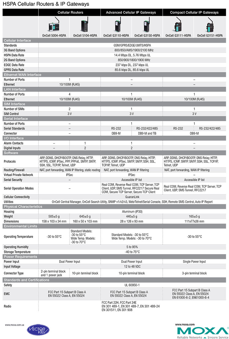 Серія МОХА HSPA обладнання забезпечує досить високу швидкість передачі даних для потокового відео і підтримки додатків віддаленого відеоспостереження. На додаток до технології GuaranLink, яка забезпечує надійний стільниковий зв'язок, обладнання МОХА HSPA також підтримує VPN і програмне забезпечення private IP для простого і безпечного мобільного управління.