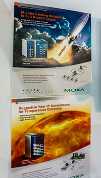На стенді також були представлені діаграми реалізованих проектів в різних областях автоматизації. Зацікавлені клієнти змогли отримати на нашому стенді повні електронні каталоги продукції MOXA для індустріальної автоматизації, а також проспекти, що пояснюють застосування обладнання MOXA в різних індустріальних додатках.