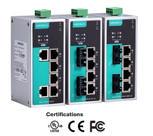 Некерований індустріальний Ethernet комутатор з 5 10/100BaseT(X) портами, 4 з яких 10/100BaseT(X) 802.3af (PoE) сумісні і одним multi mode 100BaseFX портом (SC з'єднувач), робоча температура від -40 до 75°C |