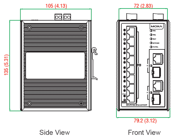 або 2 * 10/100BaseFX комбо Ethernet портами. MOXA EDS-P510A-8PoE