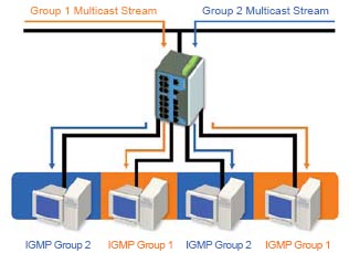 MOXA EDS-510A підтримує IEEE 802.1D-1998 GMRP (GARP Multicast Registration Protocol) і IGMP Snooping забезпечує здатність обмежувати мультикастовий трафік так, щоб він прямував тільки в ту кінцеву точку, яку потребує цей тип трафіку, тим самим зменшуючи загальний трафік