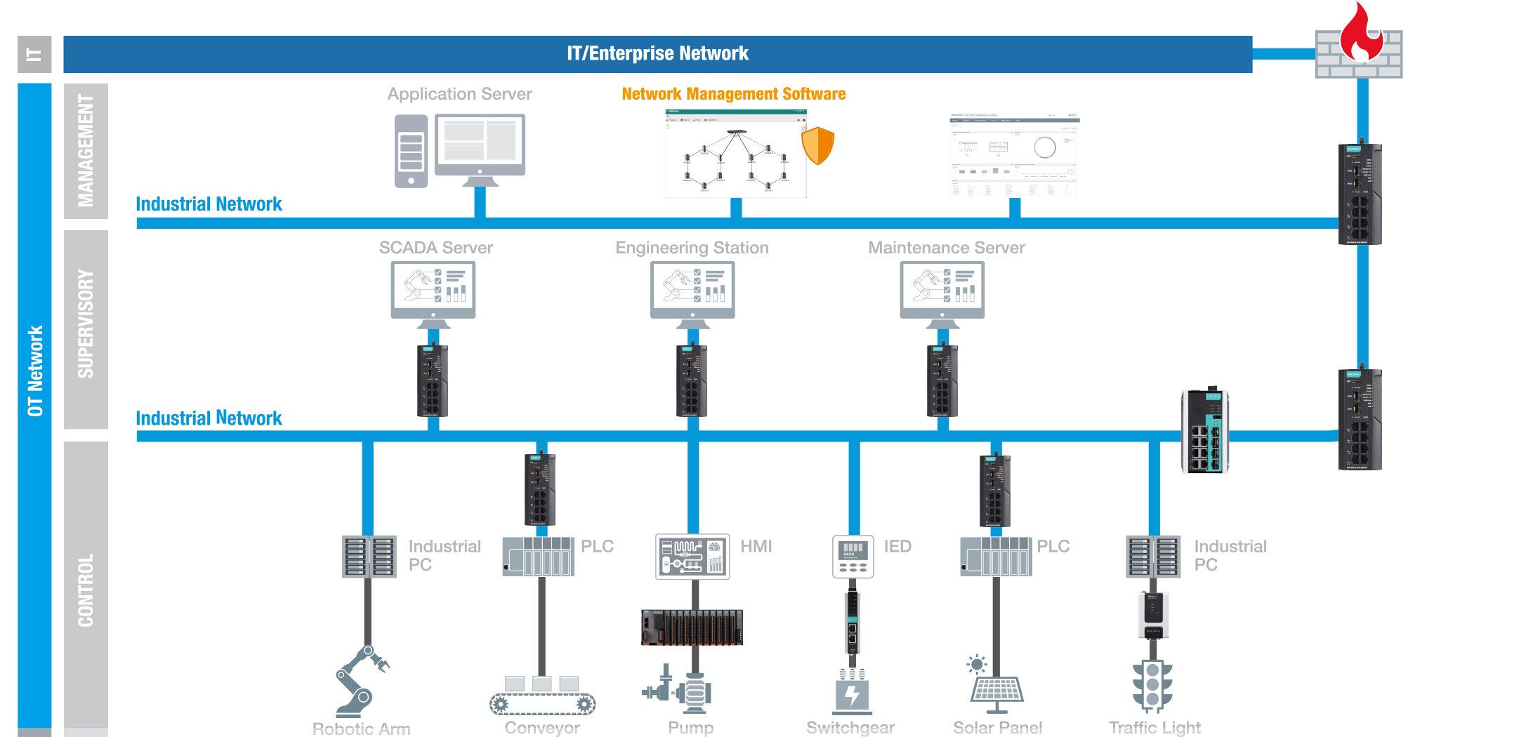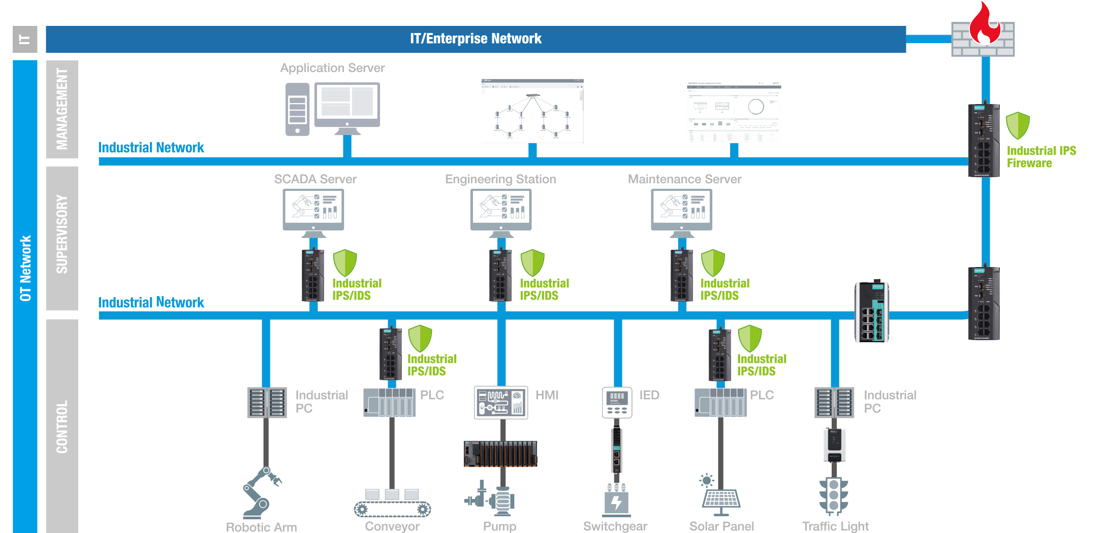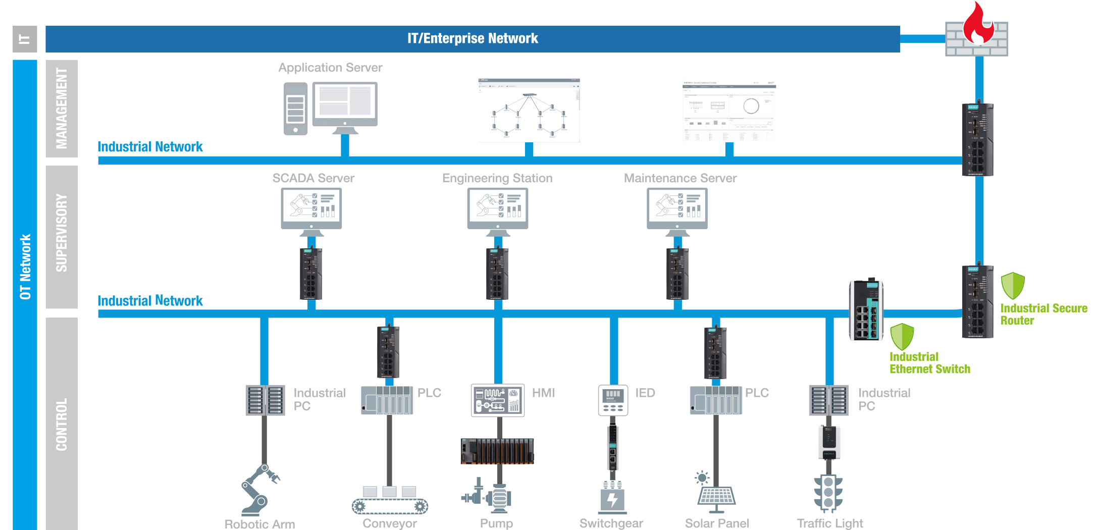 Щоб усунути розрив між світом OT та ІТ, Moxa пропонує скоординовані рішення, розроблені для повного захисту ваших промислових мереж.