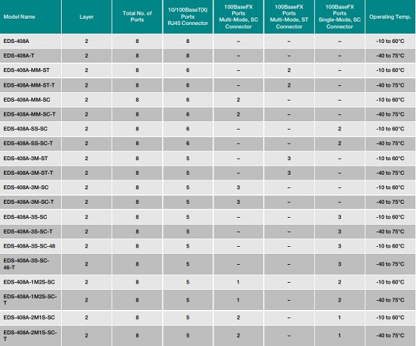 початкового рівня з 8 10/100BaseT(X) портами, робоча температура від