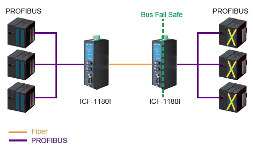 Щоб запобігти таким ситуаціям, MOXA ICF-1180I були розроблені так, щоб виявляти і розпізнавати наявність шумових сигналів. Якщо на шині виникають шуми з одного боку, то цей шум не буде передаватися через MOXA ICF-1180I і не впливатиме на сегменти шини. Крім цього, MOXA ICF-1180I згенерує оповіщення про тривогу для інженерів за місцем знаходження помилки.