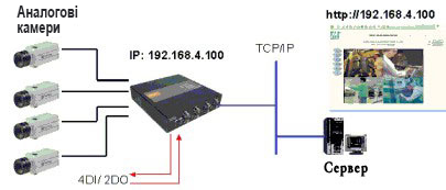 4-канальний відеосервер для віддаленого спостереження через TCP/IP мережі |