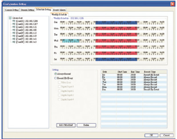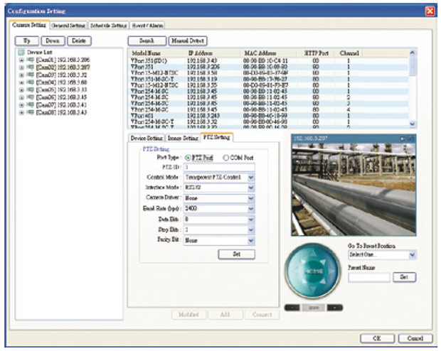 - Автоматичний пошук або ручне задавання IP адрес відеопристроїв в мережі