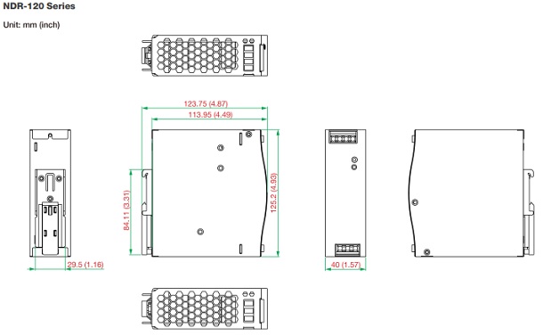 NDR-120-48: 123.75 x 125.20 x 40 мм