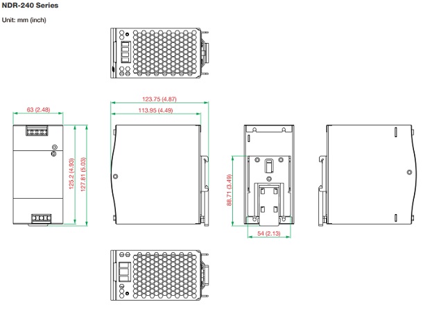 NDR-240-48: 127.81 x 123.75 x 63 мм |