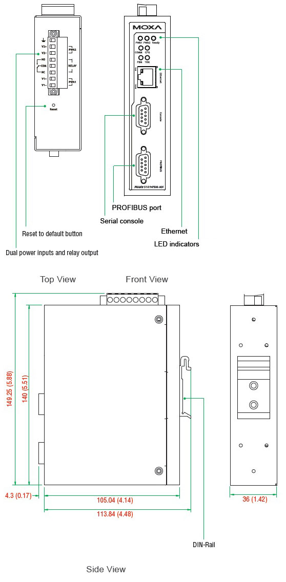 Серія MGate 5101-PBM-MN Однопортові PROFIBUS в Modbus TCP шлюзи