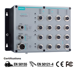Серія MOXA TN-5516A сумісна зі стандартами EN50155 - температура, захист від перешкод і вібрації, резервоване живлення - це економічно ефективний засіб для побудови надійних індустріальних мереж.