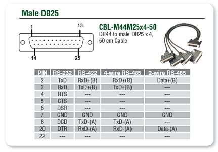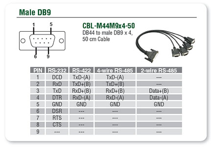 TxD, RxD, RTS, CTS, DTR, DSR, DCD, GND |