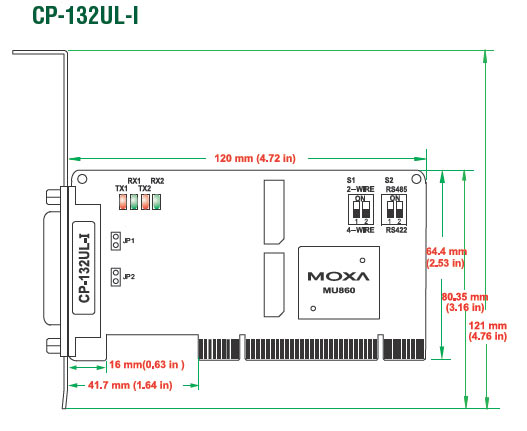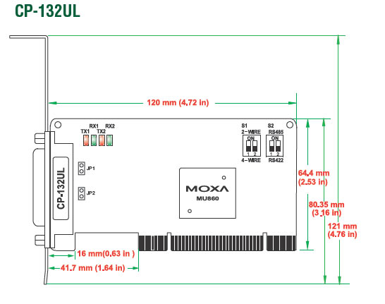 2- портова плата RS-422/485 MOXA для Universal PCI шини |