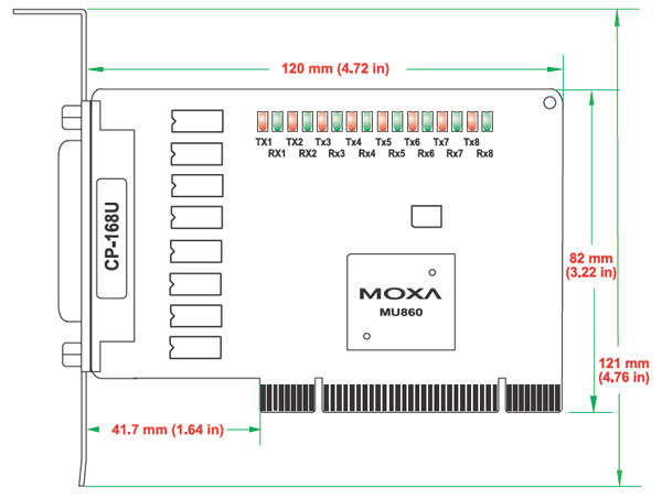 CP-168U V2: MOXA UART (MU860, 16C550C сумісний) |