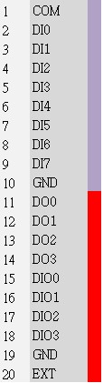 Pin Assignment I/O (top to bottom)