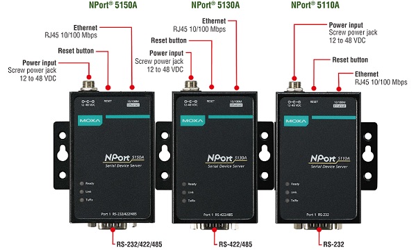 Серія асинхронних серверів MOXA NPort 5100А спроектована так, щоб пристрої з послідовним інтерфейсом, підключені до них стали мережевими і були доступні з будь-якої точки мережі. Серія MOXA NPort 5100А серверів пристроїв має ультратонкий корпус підвищеної міцності, що спільно з великим числом виконуваних ними функцій робить цей пристрій зручним, простим і надійним для Ethernet застосувань.