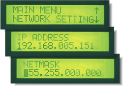 Пристрої серії NPort 5400 мають 4 кнопки для введення даних і вибору типу операції. Дисплейна панель спочатку показує "Ім'я серверу", "Серійний номер" і "IP адресу". Використання дисплейної панелі та кнопок, дозволяє конфігурувати IP адресу, мережеву маску, шлюз, а також всі інші параметри швидко і легко.