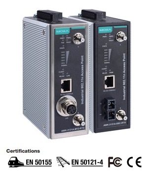802.11a/b/g/n бездротова точка доступу (AP/Client) для зв'язку поїздів з наземним обладнанням, європейське виконання, M12/QMA роз'єми, робоча температура від -40 до 75°C |