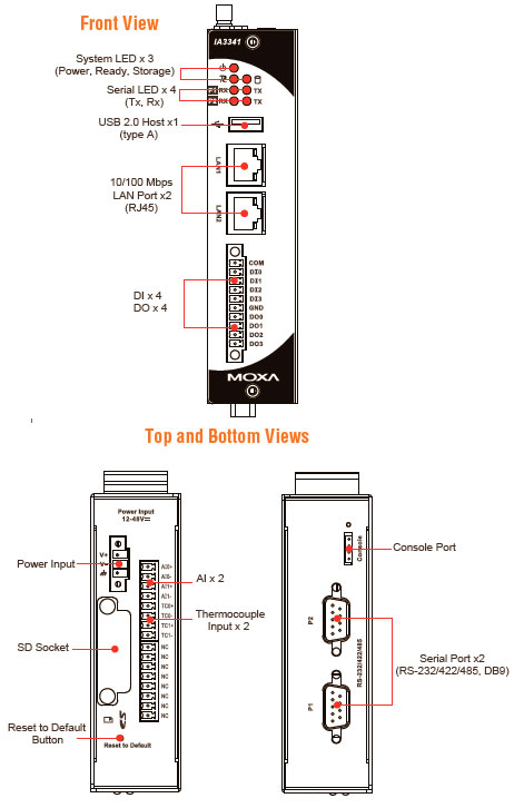4 цифровими входами і виходами, 2 аналоговими входами і 2 входами для термопар,