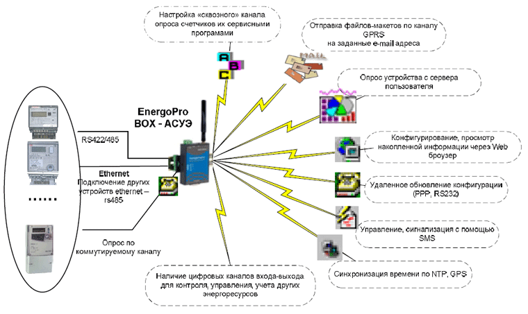 передачи всех полученных данных УСПД локального уровня в системы автоматизированного учета электроэнергии (АСКУЭ) по различным каналам связи. УСПД